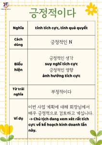 Hãy cùng tìm hiểu về cách dùng từ “긍정적이다” dưới đây nha!