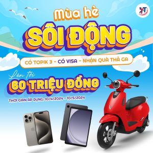 Chào hè rộn rạng, ring ngàn quà tặng cùng Tiếng Hàn và Du Học Thầy Tư. ⏰ Thời gian áp dụng: 10/4 ~ 10/5/2024 Cụ Thể: Khi đăng ký tham gia chương trình Du Học Hàn Quốc, bạn sẽ có cơ hội nhận được. Xe máy điện. Điện thoại Iphone. Máy tính bảng. Bộ học